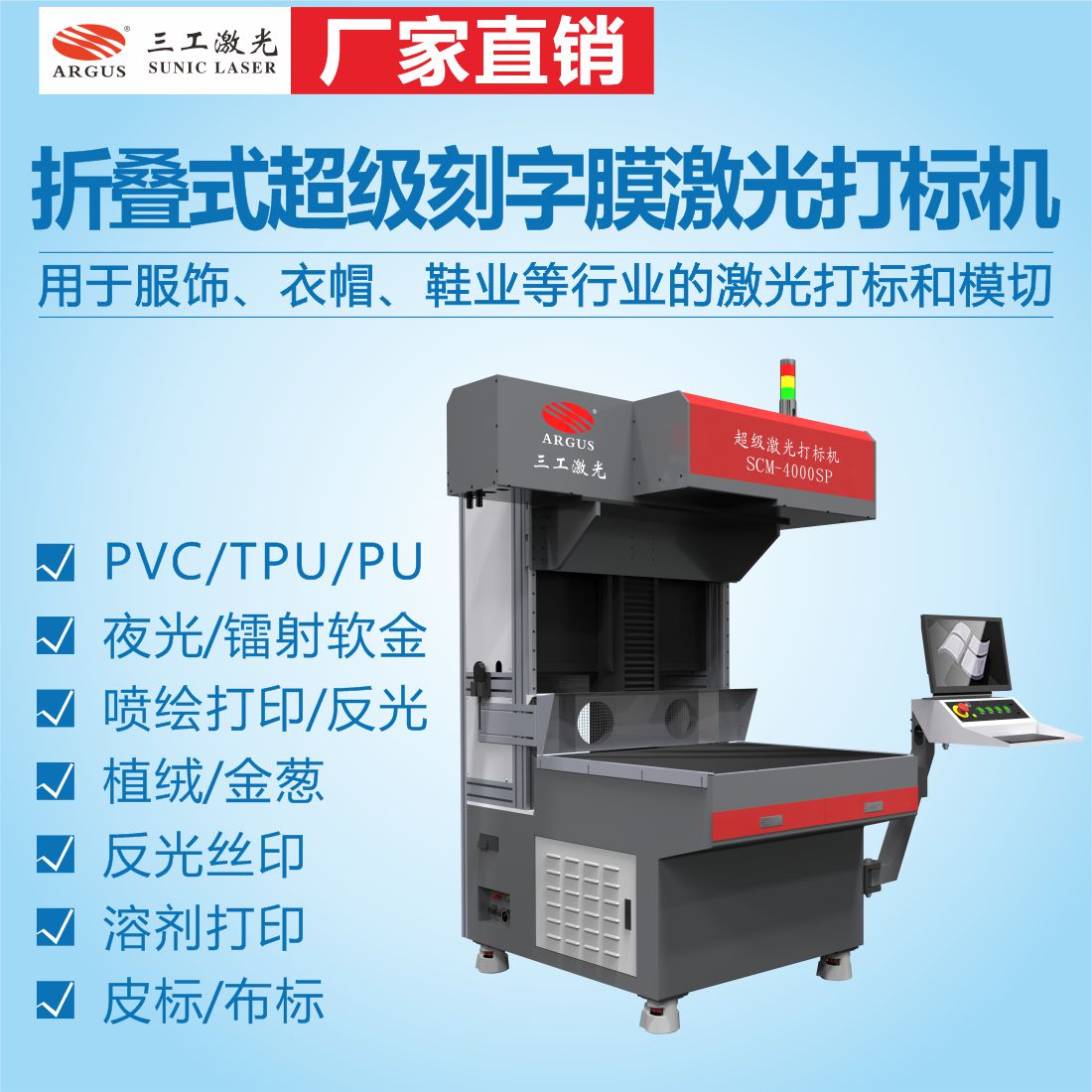 傳統刻字膜刻字機要刀壓、角度、速度等等因素都容易造成產品質量問題,速度太快容易故障,刻不斷等等。而采用激光打標技術進行刻字膜的雕刻,速度超快精度更高,電腦 精準控制精度可達0.1mm,制作的刻字膜圖案更精美。三工刻字膜激光打標機,適用材料廣,可用于各類燙畫材料、服裝輔料以及布料的個性定制加工,功能強大。