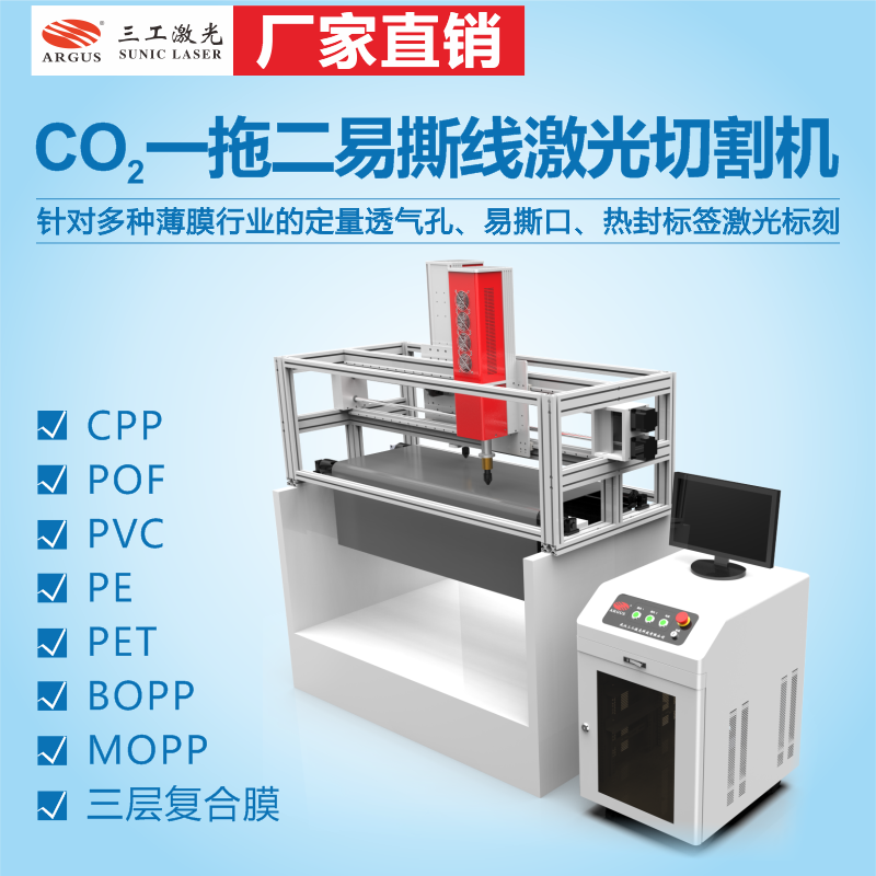 隨著商品易撕線的需求以及激光打標技術(shù)的發(fā)展,激光對于薄膜包裝行業(yè)也有了進一步的提升,而易撕口激光標刻機也成為了PE、PET、PVC等薄膜行業(yè)加工的新標準。為什么呢?主要是因為傳統(tǒng)壓孔設(shè)備已經(jīng)不能夠滿足現(xiàn)階段快速生產(chǎn)的需求,同時也不能滿足任意形狀任意方向“虛線”切割的需求。傳統(tǒng)加工形式存在的缺陷問題,讓很多商家都感到頭疼,為了適應(yīng)時代發(fā)展的需求,越來越多的商家開始引進具有先進技術(shù)的激光設(shè)備來取代傳統(tǒng)加工設(shè)備。