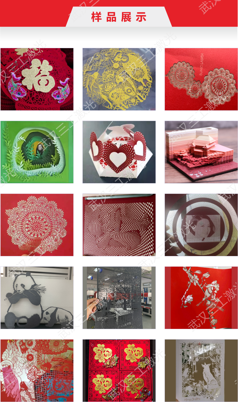該設(shè)備適用于賀卡、年畫、喜帖、月餅盒、糖盒、剪紙、3D紙雕燈、請柬、蛋糕圍邊、席位卡杯卡、繪畫模板、文創(chuàng)工藝品等多種紙質(zhì)材料以及PET材料的雕刻、切割、鏤空制作。