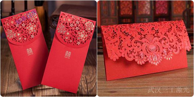 新年紅包激光鏤空機進行雕刻加工無需開刀模,快速成型,切口平整,圖形可任意形狀,激光鏤空雕刻加工具有很強的立體感,春節(jié)周邊裝飾品激光鏤空機具有加工精度高、自動化程度高、加工速度快、加工效率高、操作簡單方便等特點,適應(yīng)了紙品生產(chǎn)技術(shù)潮流,所以激光鏤空加工技術(shù)正在以驚人的速度在紙品行業(yè)內(nèi)得到推廣和普及??梢詮氐卓朔鹘y(tǒng)印刷行業(yè),喜帖賀卡印刷耗時、不環(huán)保的這些缺點。激光鏤空雕刻的春節(jié)周邊產(chǎn)品,滿足低成本的個性化定制需求,速度快效率高,立體感強,優(yōu)點多多!