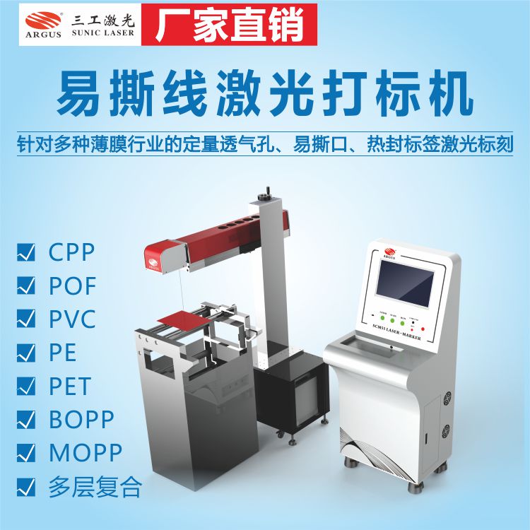 2、每分鐘280米的速度!專為薄膜包裝行業(yè)設(shè)計的易撕線、定量透氣孔激光標(biāo)刻機,一套系統(tǒng)可配置多個激光頭,觸屏獨立操作。可根據(jù)客戶現(xiàn)有生產(chǎn)線定制安裝尺寸!