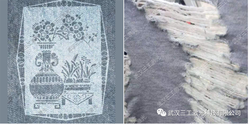 武漢三工牛仔激光燒花機利用激光的熱效應(yīng),