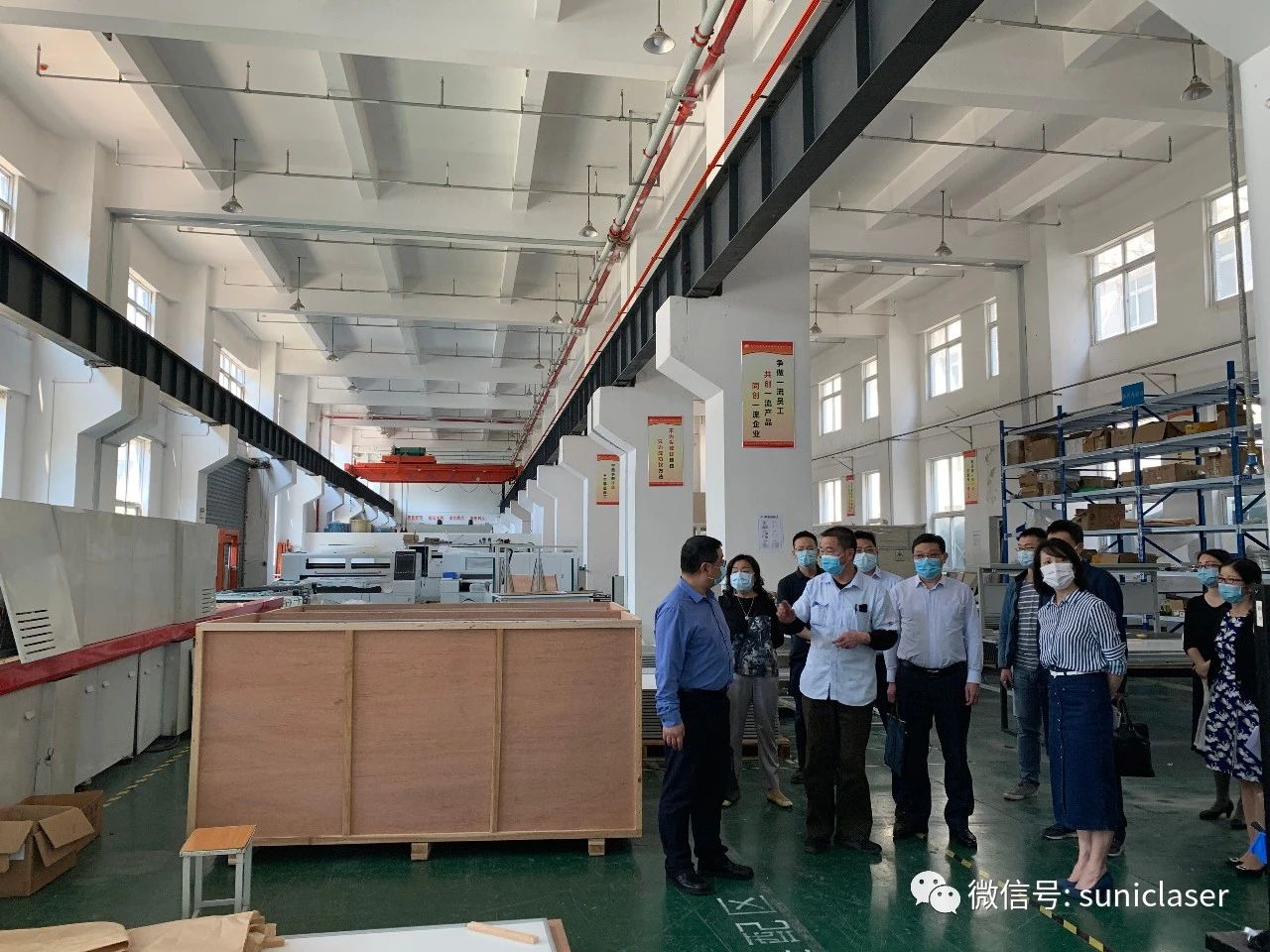 副局長崔永紅一行深入生產一線了解生產經(jīng)營情況,參觀了三工智能板塊互聯(lián)組件智能焊接裝備研發(fā)車間、三工激光超大幅面服裝激光燒花機車間、導光板激光打點機車間。