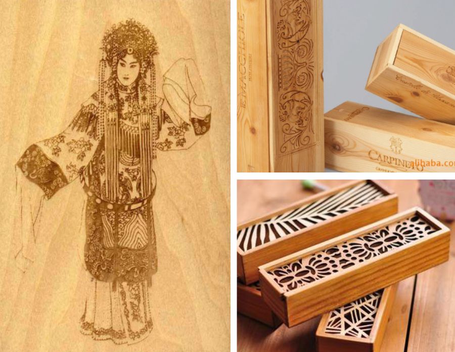 木制工藝品主要是以各種木頭為主要原料,通過機(jī)器或純手工制作,在切割或雕刻等工藝后,做出精細(xì)的成品。其風(fēng)格多樣,而且色澤自然,新穎別致。由于純手工制作的工序復(fù)雜、耗時長、人手不夠等問題,木制品激光打標(biāo)機(jī)就隨著科技的進(jìn)步應(yīng)運(yùn)而生。